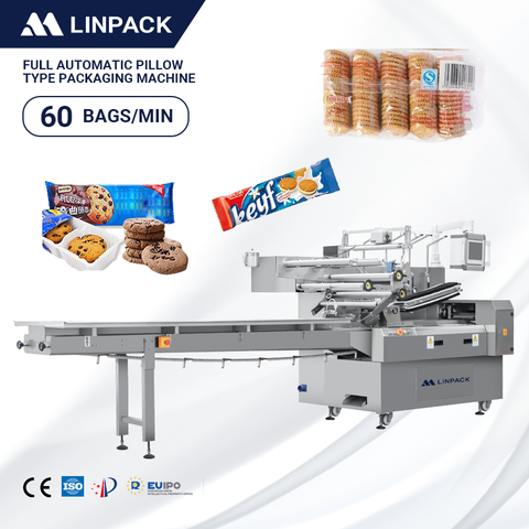 LINPACK 웨이퍼 비스킷 쿠키 백 열 씰 포장기 쿠키 용 자동 공급기가 포함 된 자동 베개 형 포장기